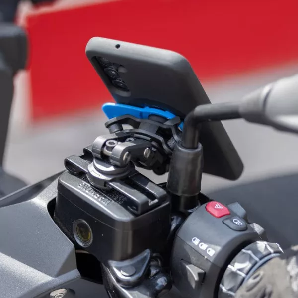 A tartó oldalra mozgatható, ha kis féktartály fedelére van felszerelve, így biztosítva, hogy a telefonod olyan helyzetben legyen, hogy teljes hozzáférést biztosítson az összes kezelőszervhez.