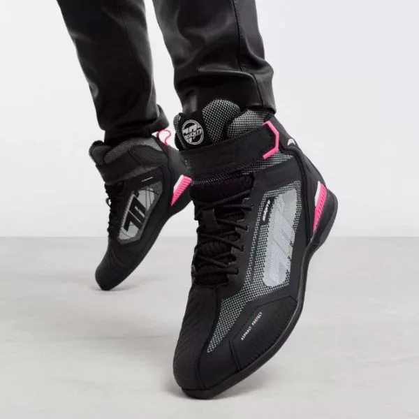 Sportos megjelenésű női motoros cipő tartós mikroszálas és AIRKNIT anyagból
